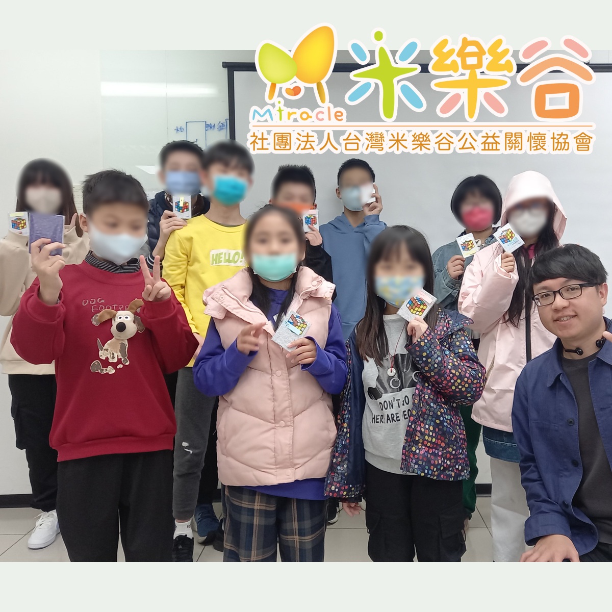 一臉得意地要外頭的老師幫忙打亂方塊。
