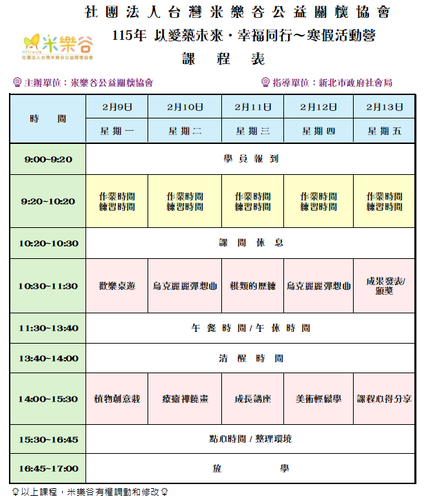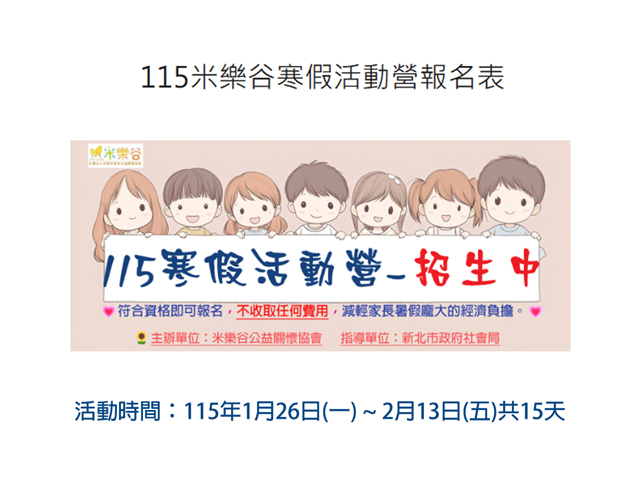 🌻主辦單位:米樂谷公益關懷協會   指導單位:新北市政府社會局
